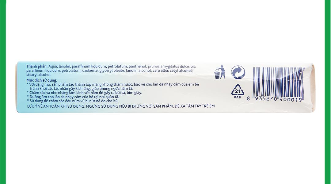 - Với dạng mỡ, sản phẩm tạo thành một lớp màng không thấm nước, bảo vệ cho làn da nhạy cảm của em bé tránh khỏi các tác nhân gây kích ứng, giúp phòng ngừa hăm tã.