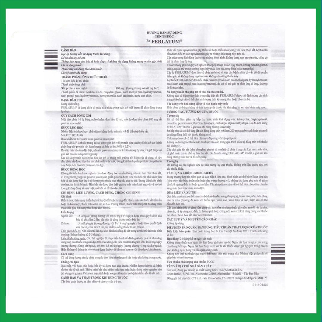 Dung dịch Ferlatum Italfarmaco điều trị thiếu sắt (10 chai x 15ml)