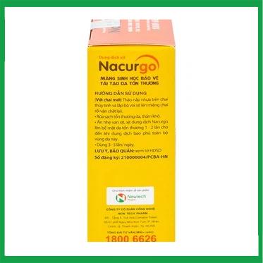 Nacurgo là dung dịch xịt trên da, tạo thành một lớp màng sinh học Polyesteramide giúp: làm mát và dịu da; làm sạch da, góp phần thúc đẩy quá trình tái tạo tế bào da; bảo vệ da, góp phần ngăn ngừa vi khuẩn xâm nhập.