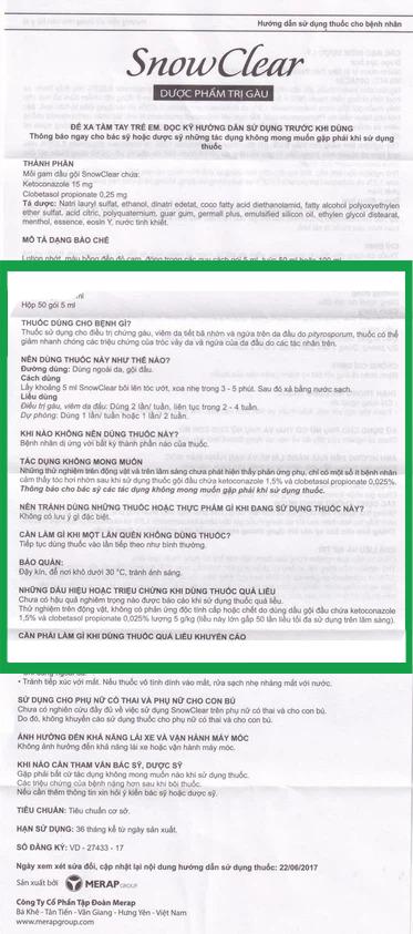 Muốn sạch gàu phải diệt nấm tận gốc bằng cách sử dụng dòng dầu gội dược phẩm, không chỉ hết nấm, hết ngứa, sạch da đầu mà còn không gây khô tóc. Dầu gội trị gàu và diệt nấm da đầu Snowclear 50 gói có tác dụng điều trị chứng gàu, viêm da tiết bã nhờn và ngứa da đầu do Pityrosporum, thuốc có thể giảm nhanh chóng các triệu chứng của da đầu và tóc.