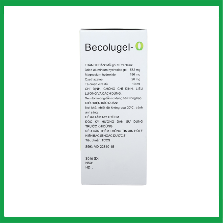 Becolugel-O là công thức chứa thuốc kháng acid dịch vị và chất gây tê bề mặt (oxethazaine).