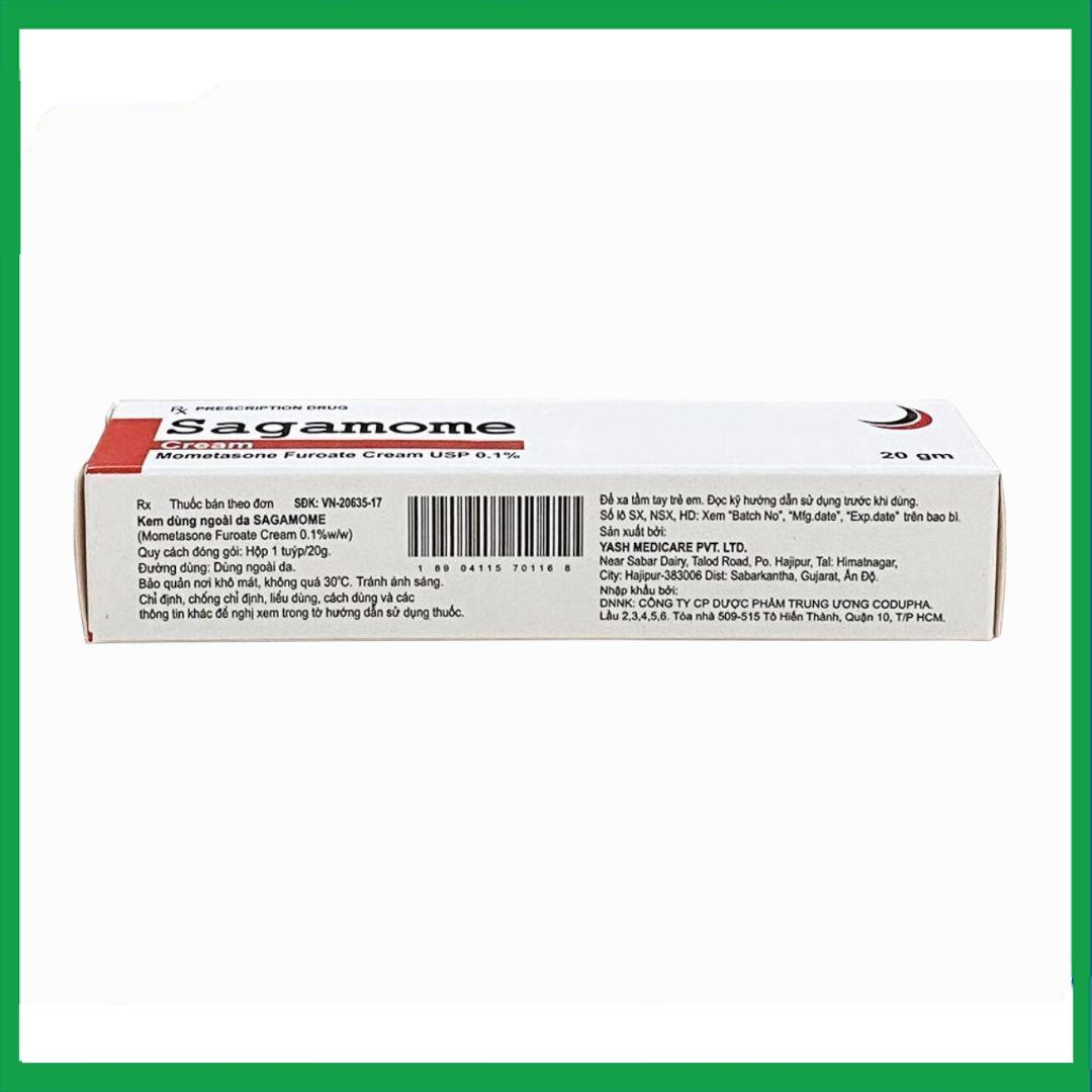 Sagamome có thành phần chính mometasone, điều trị viêm và biểu hiện của bệnh vẩy nến (ngoại trừ vẩy nến trên diện rộng) và viêm da dị ứng.