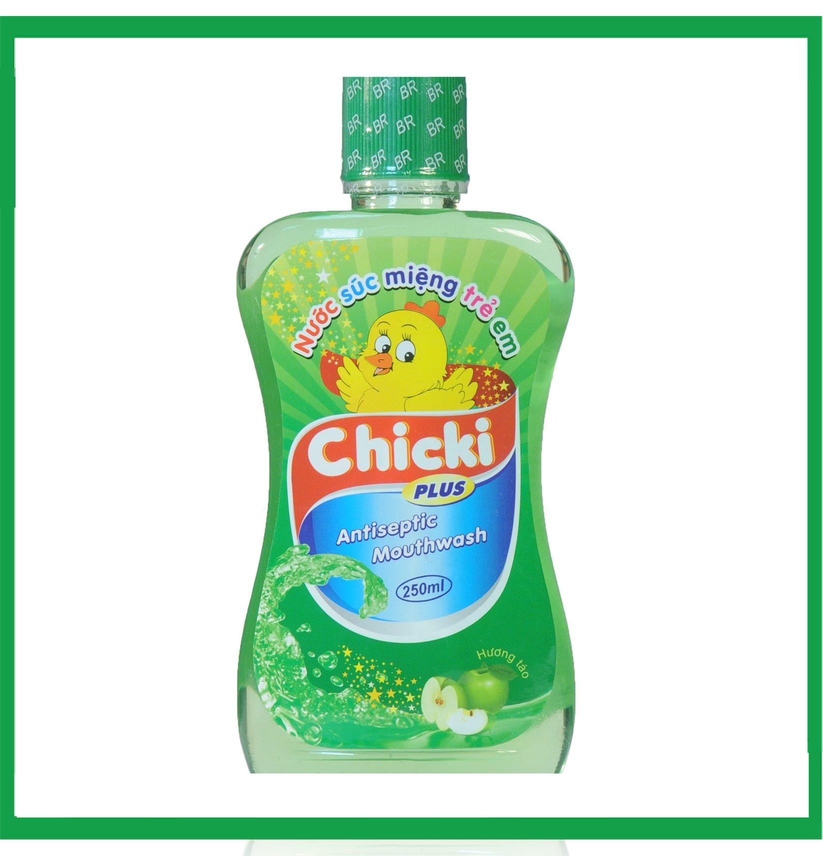 Nước súc miệng CHICKI trẻ em NEW là sản phẩm để chăm sóc răng và miệng có rất nhiều tác dụng như chống viêm lợi, sát khuẩn, sạch họng, chống viêm họng; làm sạch, làm thơm răng, miệng; và đặc biệt là vệ sinh răng, miệng, giúp ngừa sâu răng…