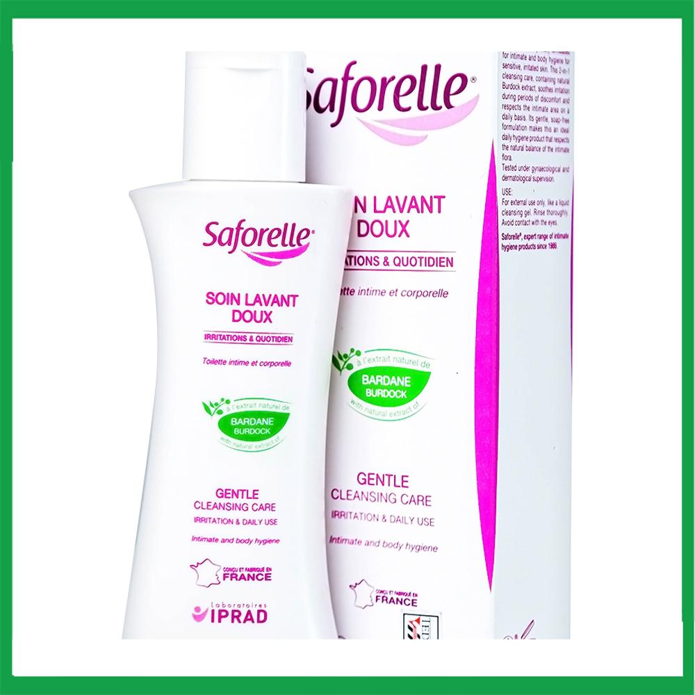 Dung dịch vệ sinh Saforelle làm sạch nhẹ nhàng và làm dịu các kích ứng. Với pH kiềm nhẹ và công thức giàu chất làm mềm và chất làm nhẹ dịu của cây ngưu bàng, Saforelle thích hợp dùng hàng ngày để chăm sóc cơ thể, vệ sinh cơ quan sinh dục ngoài, niêm mạc và da nhạy cảm.