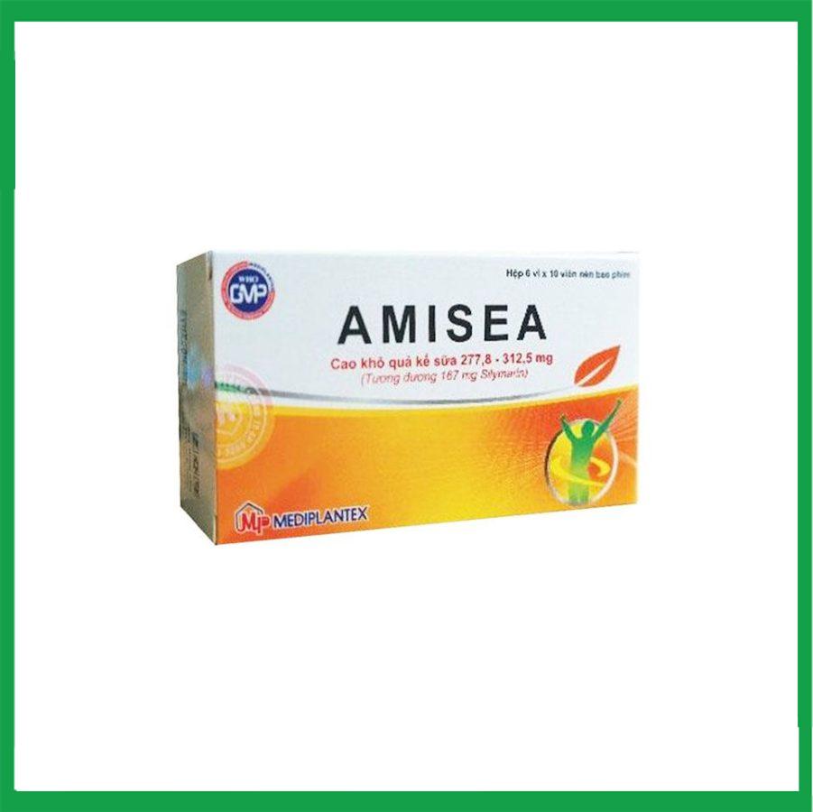 Thuốc Amisea là sản phẩm của Công ty Cổ phẩn Dược Trung ương Mediplantex, có thành phần từ dược liệu bao gồm Cao khô quả kế sữa (tương đương Silymarin). Thuốc được sử dụng để hỗ trợ điều trị viêm gan mạn tính, xơ gan, tổn thương gan do các chất độc hại (rượu, bia, hóa chất, các thuốc gây độc cho gan).