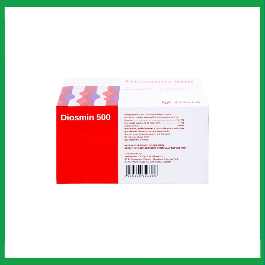 Thuốc Diosmin 500 có thành phần chính là Diosmin và các flavonoid biểu thị bằng hesperidin, được chỉ định để điều trị những triệu chứng liên quan đến suy tĩnh mạch – mạch bạch huyết (nặng chân vào buổi sáng (do mạch máu), đau chân) và điều trị những triệu chứng liên quan đến cơn trĩ cấp.