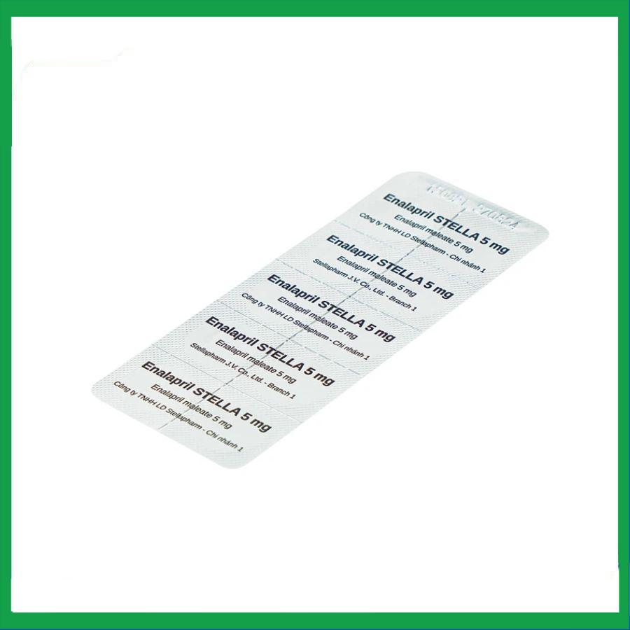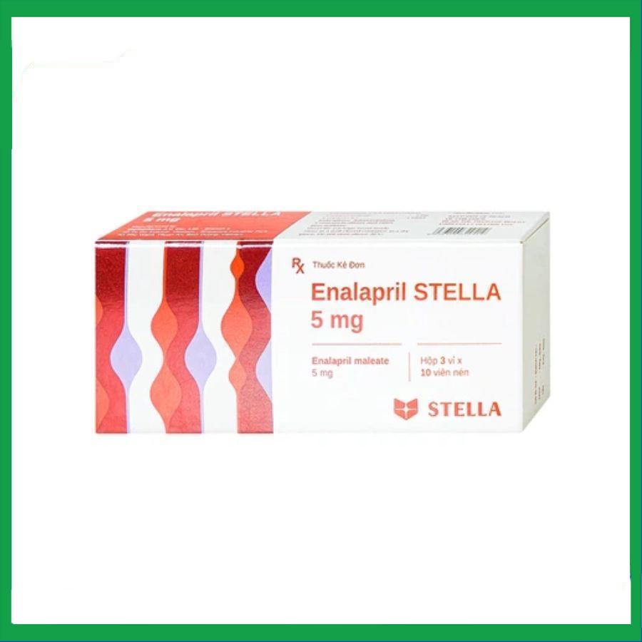 Enalapril 5mg Stella của Công ty TNHH Liên doanh Stellapharm, thành phần chính Enalapril maleat, là thuốc dùng để điều trị tăng huyết áp, hoặc kết hợp với các thuốc chống tăng huyết áp khác, điều trị suy tim sung huyết.