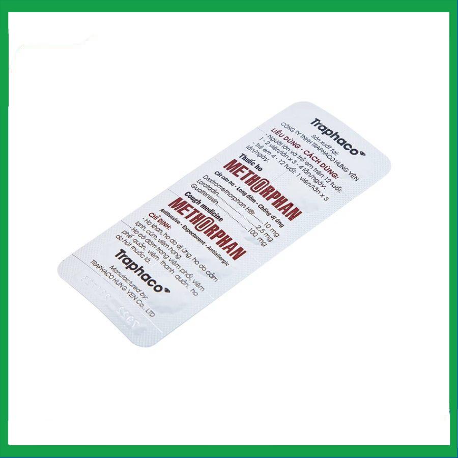 Thuốc ho Methorphan Traphaco cắt cơn ho, điều trị long đờm, chống dị ứng (2 vỉ x 10 viên)