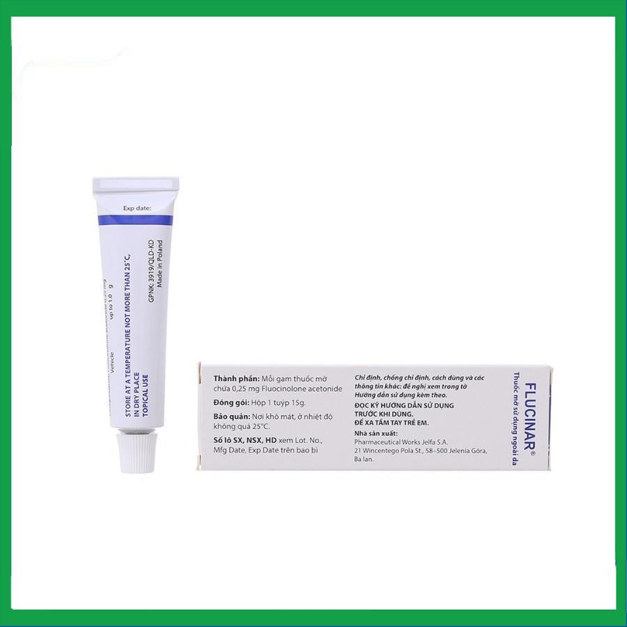 Thuốc mỡ Flucinar được sản xuất bởi Pharmaceutical Works Jelfa S.A, với thành phần chính Fluocinolone acetonide, là thuốc dùng để điều trị ngắn hạn các trường hợp nặng và cấp tính của bệnh viêm da khô không nhiễm khuẩn có đáp ứng với các glucocorticosteroid, liên quan đến chứng dày sừng và ngứa dai dẳng. Thuốc còn được sử dụng trong các trường hợp viêm da tiết bã nhờn, viêm da do di truyền, mày đay do bệnh liken.