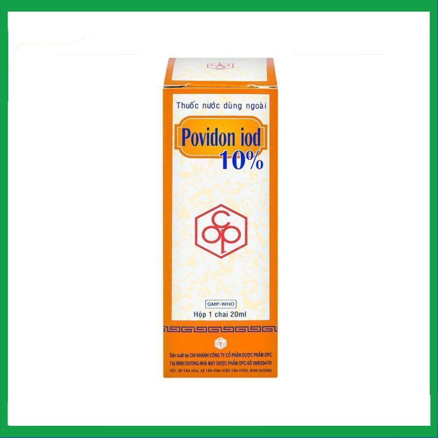 Thuốc Povidon Iod 10% được sản xuất bởi Công ty Cổ phần Dược phẩm OPC, có thành phần là povidon iod được sử dụng để khử khuẩn và sát khuẩn các vết thương ô nhiễm và da, niêm mạc trước khi phẫu thuật, phụ trị nấm da, lang ben, nấm kẽ, lau rửa, sát khuẩn dụng cụ y tế trước khi tiệt khuẩn.