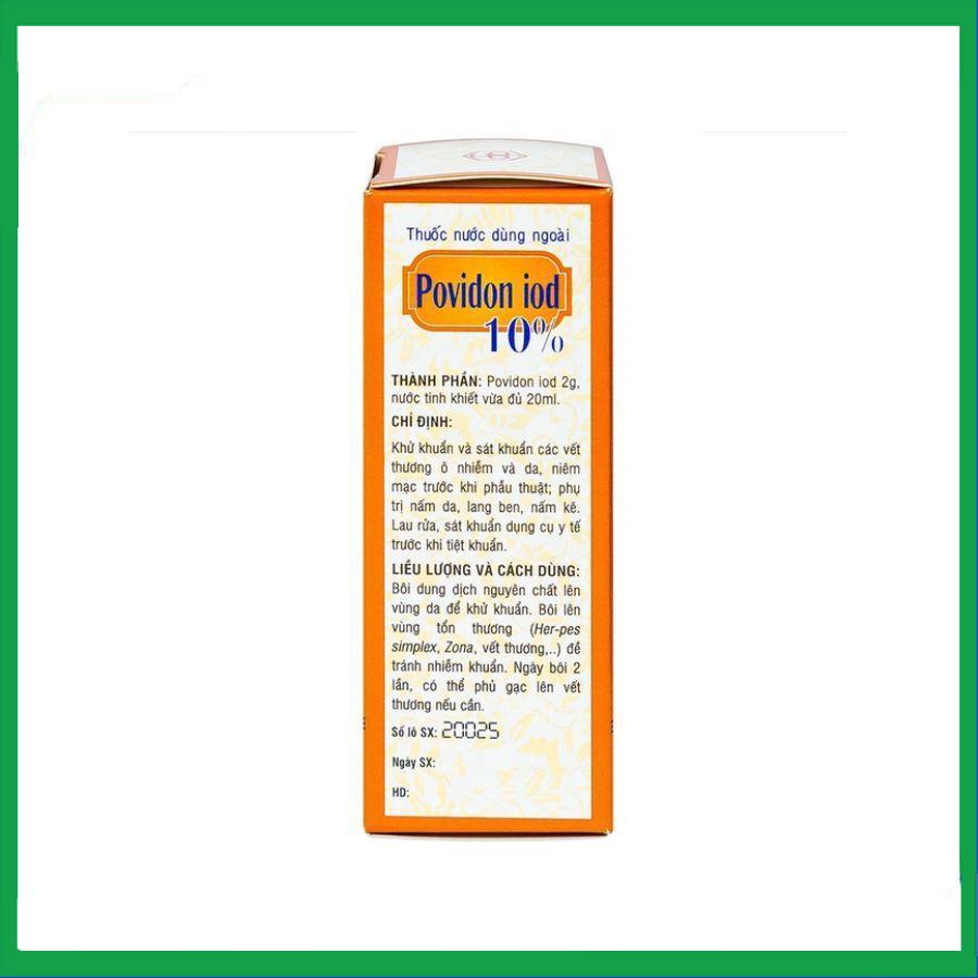Thuốc nước dùng ngoài Povidon Iod 10% sát khuẩn vết thương ô nhiễm và da (20ml)