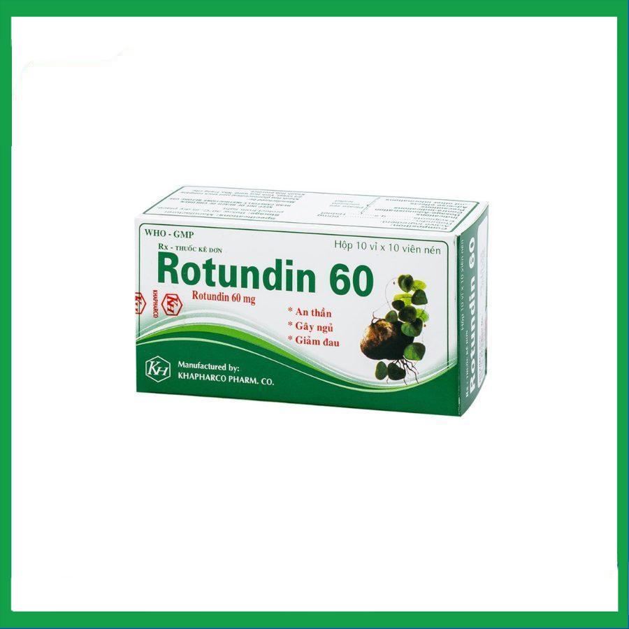 Rotundin do Công ty Cổ phần Dược phẩm Khánh Hòa sản xuất, có thành phần chính là rotundin 60 mg. Thuốc được chỉ định giúp an thần, gây ngủ; giảm đau trong các trường hợp đau do co thắt ở đường tiêu hóa, tử cung, đau dây thần kinh, đau đầu.