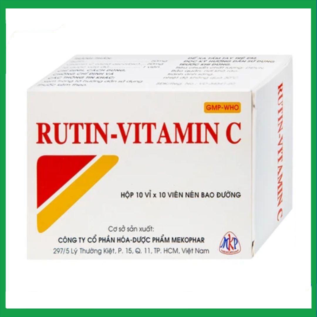 Thuốc Rutin - Vitamin C là sản phẩm của Dược Phẩm Mekophar, có thành phần chính là Rutin và Vitamin C (Acid ascorbic), được sử dụng để hỗ trợ điều trị các hội chứng chảy máu, xơ cứng, tăng huyết áp, ban xuất huyết, chứng giãn tĩnh mạch (phù, đau, nặng chân, bệnh trĩ,...). Tác dụng làm tăng sức bền thành mạch và giảm tính thẩm mao mạch.