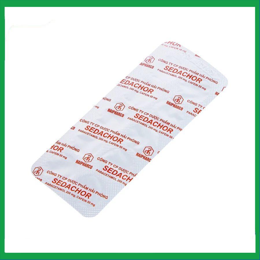 Sedachor do công ty Dược phẩm Hải Phòng sản xuất. Thuốc có thành phần là paracetamol và cafein, tác dụng giảm đau và sốt. Sedachor được đóng gói thành hộp 50 vỉ x 10 viên.