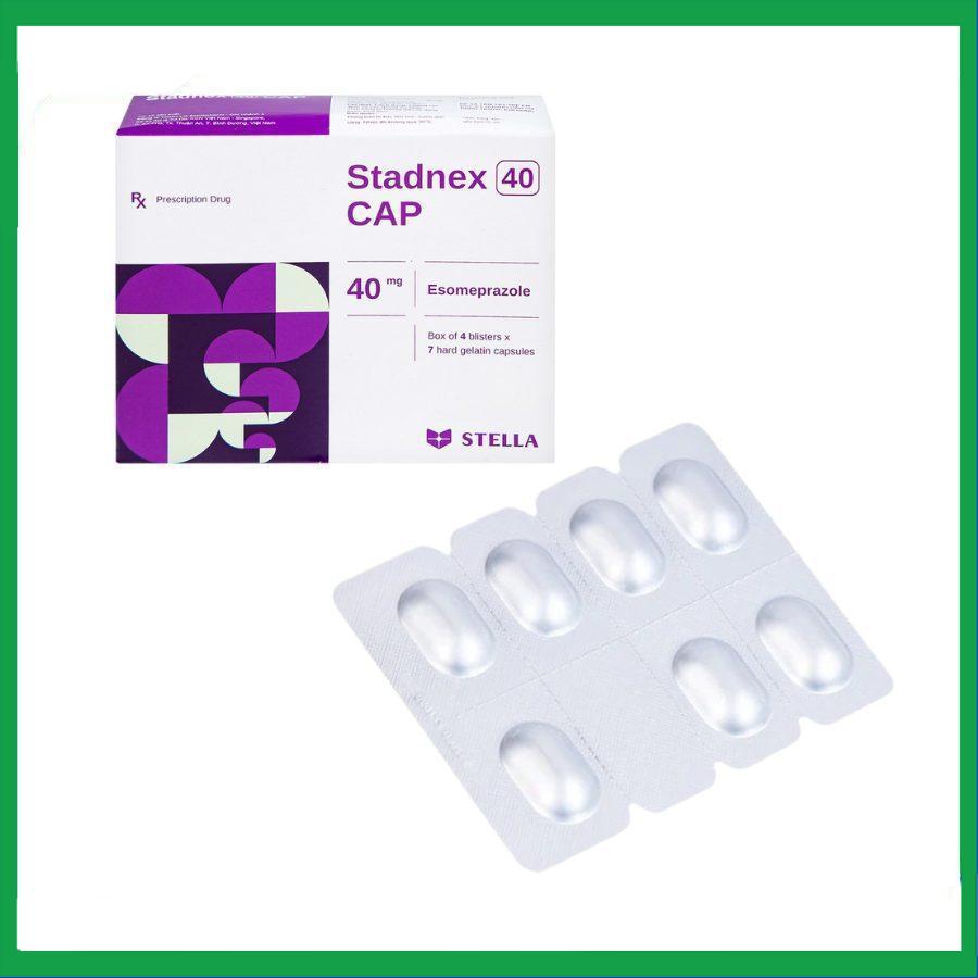 Stadnex 40 CAP thành phần chính là esomeprazol (dưới dạng esomeprazol magnesidihydrat). Thuốc dùng để điều trị bệnh trào ngược dạ dày - thực quản (GERD), chữa lành loét tá tràng do nhiễm Helicobacter pylori và phòng ngừa tái phát loét dạ dày tá tràng, điều trị hội chứng Zollinger - Ellison.