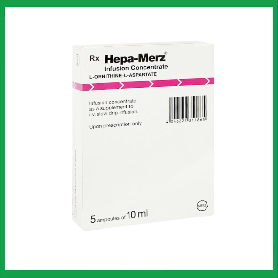 Hepa merz sản phẩm của Công ty Merz Co. GmbH Co – Đức. Đây là thuốc có thành phần chính L-ornithine-L-aspartate dùng để hỗ trợ điều trị bệnh gan cấp/mãn tính (xơ gan, gan nhiễm mỡ, viêm gan), hội chứng tăng ammoniac máu, giai đoạn đầu rối loạn nhận thức (tiền hôn mê), biến chứng thần kinh (hôn mê gan – não).