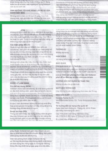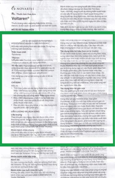 Thuốc Voltaren SR 75 mg của nhà sản xuất Novaris có thành phần là Diclofenac Na có tác dụng điều trị viêm đau xương khớp; viêm và sưng sau chấn thương hoặc sau phẫu thuật; đau bụng kinh, viêm phần phụ; hỗ trợ trong nhiễm trùng cấp tai mũi họng.