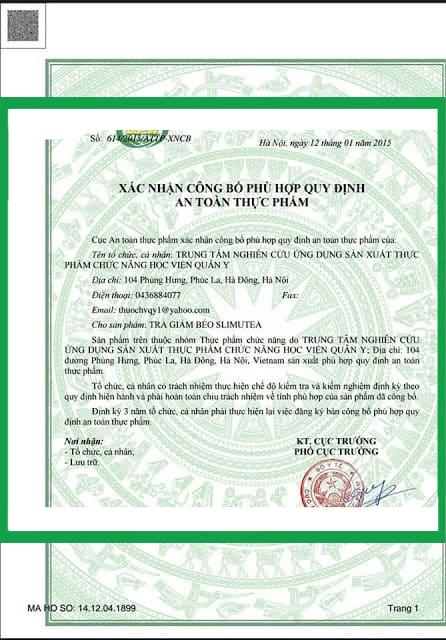 Trà giảm béo Slimutea là sản phẩm do các nhà khoa học của Học Viện Quân Y nghiên cứu và bào chế dưới dạng trà túi lọc, chủ vị là Lá sen, Thảo quyết minh, Hoàng cầm và Đinh hương. Đây là những dược liệu đã được nhiều nghiên cứu trong và ngoài nước khẳng định có tác dụng hạ mỡ máu, giúp giảm cân hiệu quả đối với những người bị béo phì.