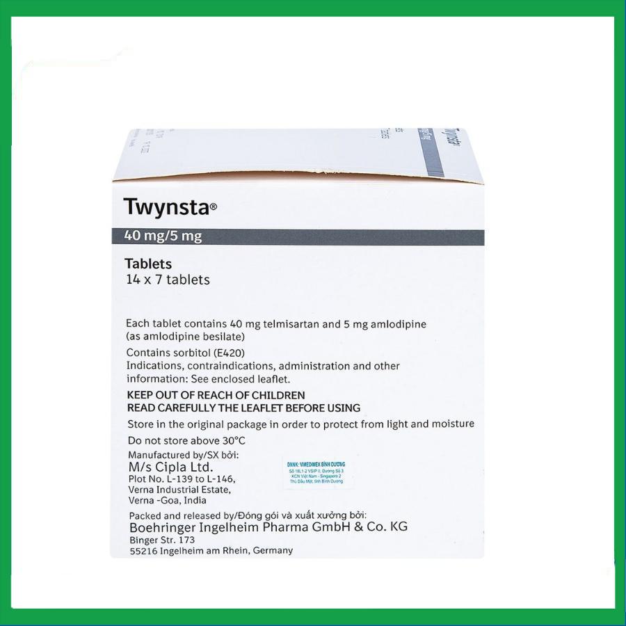 Thuốc Twynta 40/5 do công ty Boehginger Ingelheim Pharma (Đức) sản xuất, thuốc được dùng trong điều trị bệnh cao huyết áp vô căn.