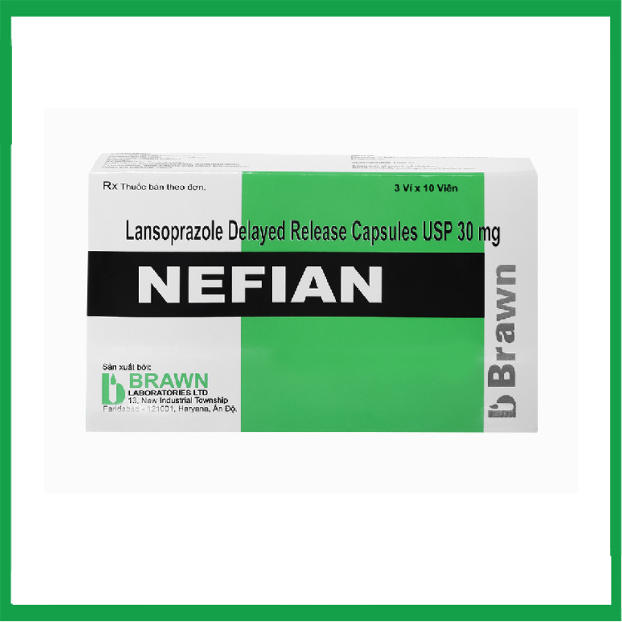 Viên nang cứng Nefian thành phần chính lansoprazole, là thuốc ức chế tiết acid dạ dày được sử dụng để điều trị loét dạ dày tiến triển, viêm thực quản do trào ngược dạ dày – thực quản và hội chứng Zollinger – Ellison.