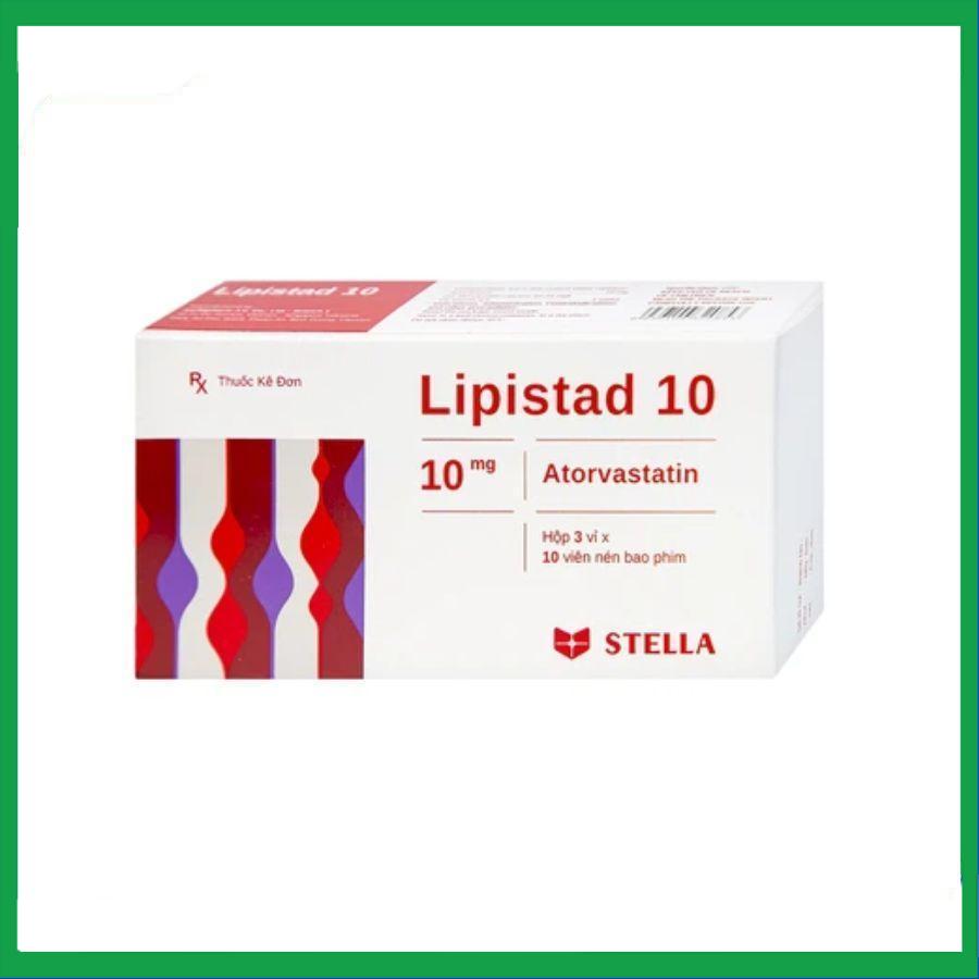 Thuốc Lipistad 10 là sản phẩm của Công ty TNHH LD Stellapharm, thành phần chính là atorvastatin. Lipistad 10 được sử dụng trong điều trị bệnh rối loạn lipid máu. Dạng bào chế lipistad 10 viên nén bao phim, viên nén hình oval, bao phim màu trắng, hai mặt khum, một mặt khắc "10" và một mặt trơn.