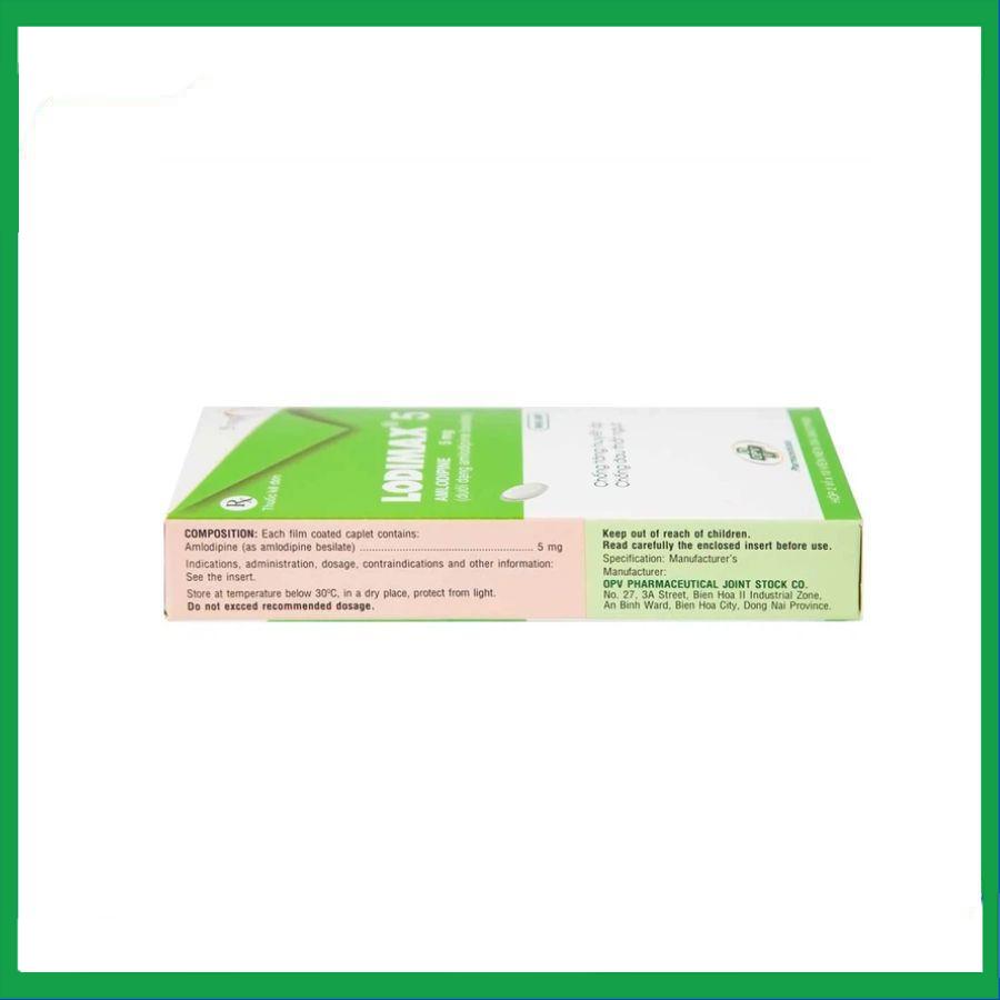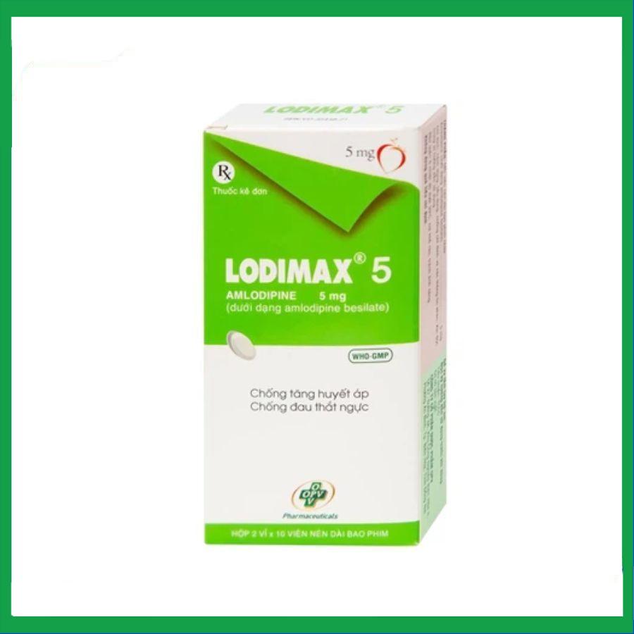 Lodimax 5 được sản xuất bởi Công ty Cổ phần Dược phẩm OPV, với thành phần chính Amlodipine, là thuốc dùng để điều trị tăng huyết áp, đau thắt ngực ổn định mạn tính và đau thắt ngực do co thắt mạch (đau thắt ngực Prinzmetal).