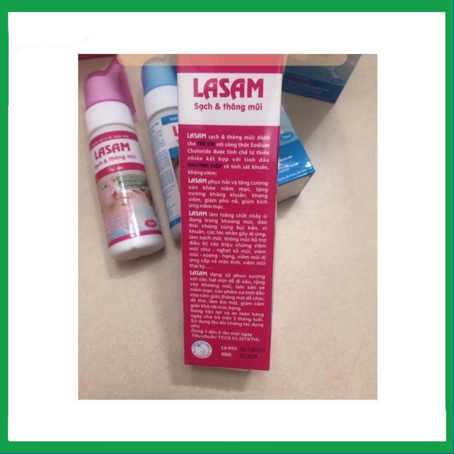 Lasam trẻ em 70ml được biết đến khá phổ biến với công dụng hỗ trợ điều trị viêm mũi và vệ sinh mũi.Dạng bào chế: Dạng xịt phun sương.