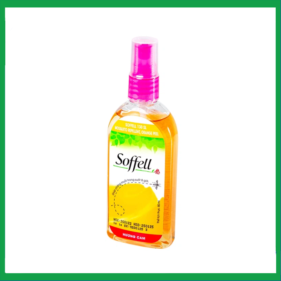 Soffell xịt chống muỗi hương cam 80ml duy trì hiệu quả xua muỗi trong suốt 8 giờ.